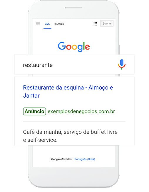 É no Google que as pessoas pesquisam o que fazer, aonde ir e o que comprar. Seu anúncio pode ser exibido na maior plataforma de buscas do mundo no momento exato em que uma pessoa estiver pesquisando produtos e serviços como os seus.